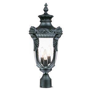 Manufacturer: Acclaim Lighting Style: Traditional Type: Post Lanterns, Size: Large Finish: Matte Black Glass: Clear Seeded Light Bulb: (3)60w B10 Cand C Incand Description: Baton Rouge post lantern head. Note: Post sold separately.