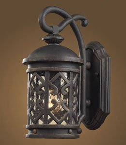 Crafted from cast aluminum with a durable weathered charcoal finish, this outdoor lantern is richly detailed and well made. The Mediterranean details include clear seedy glass encased by a distinctive pattern. A scrolled arm pattern serves as a handsome mount. Enhance your outdoor space with this romantic lantern from Elk Lighting. This practical size is perfect for many areas. Weathered charcoal finish. Clear seedy glass. Cast aluminum. Takes one 60 watt medium bulb (not included). 7" wide. 14" high. Extends 10" from wall.