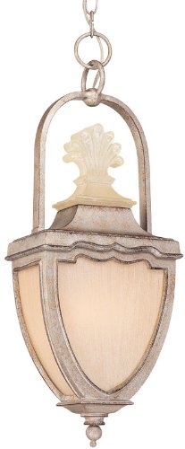 Tropical Outdoor Hanging Lantern in Chelsea with Textured Amber glass from the Hillcrest Collection by Troy Lighting. Dimensions: 23.5 H 9 W