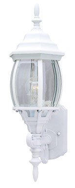 Westinghouse Outdoor Wall Lantern Fixture 20-1/2h X 6-1/2 Dia. 7-3/4 Out Uses 1 Clear 100 Watt Max. Med. Base A-19 Bulb (not Included) Replacement Bulb Ace No. 3019718 Cast Aluminum Clear Glass Panels Boxed White Pkg/2 All items sold new in original packaging